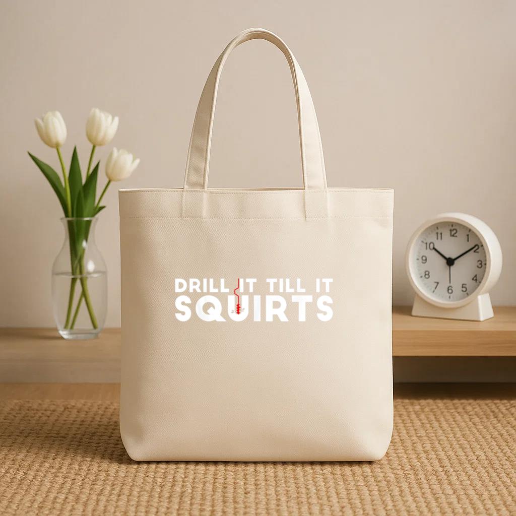 Chic, durable, and reusable , this Drill It Till It Squirts Fishing Canvas Tote Bag Canvas Tote Bag is your daily go-to or a thoughtful gift for any occasion.