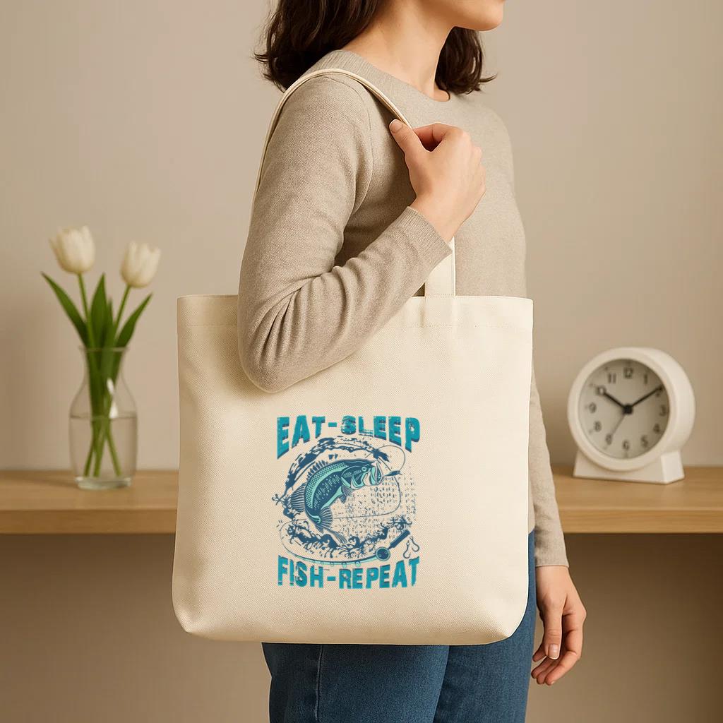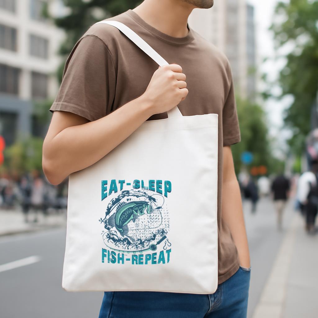 Chic, durable, and reusable , this Eat Sleep Fish Repeat Fishing Canvas Tote Bag Canvas Tote Bag is your daily go-to or a thoughtful gift for any occasion.