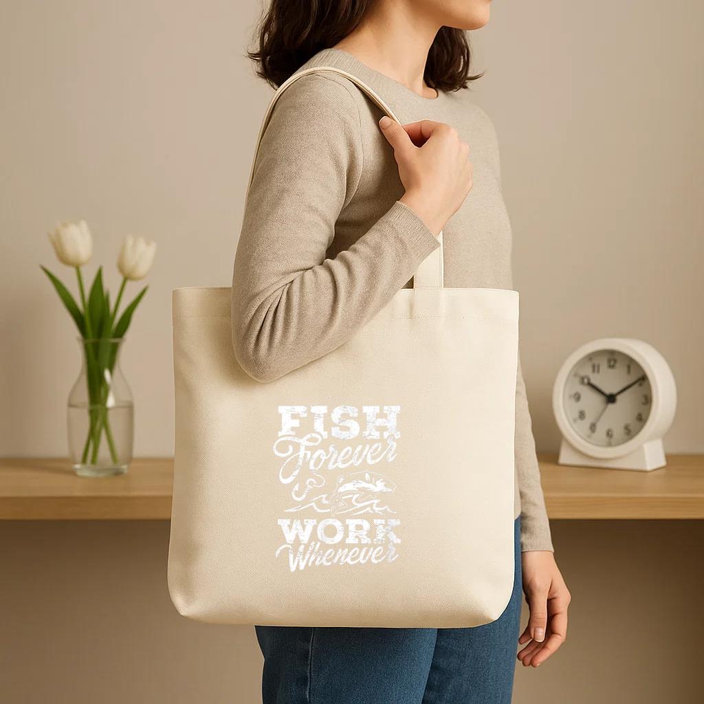 Chic, durable, and reusable , this Fish Forever Work Whenever Canvas Tote Bag Canvas Tote Bag is your daily go-to or a thoughtful gift for any occasion.